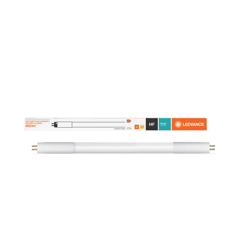 | LED TUBE T5 HF L8 SHORT VALUE 288 mm 4W 840 | G5 | 4 W | 17…40 V | 30000 h | 400 lm | 8 W | 190 ° | No |