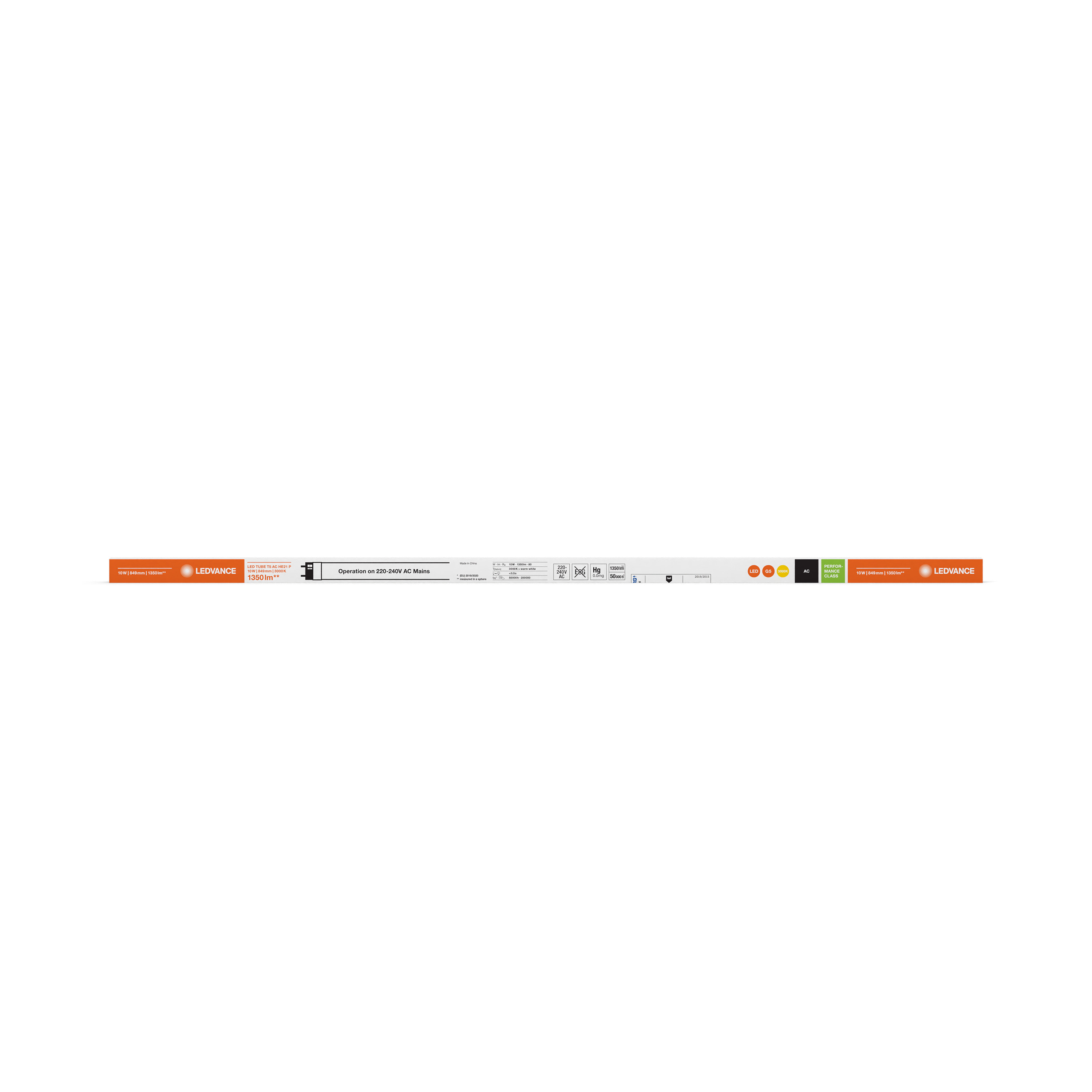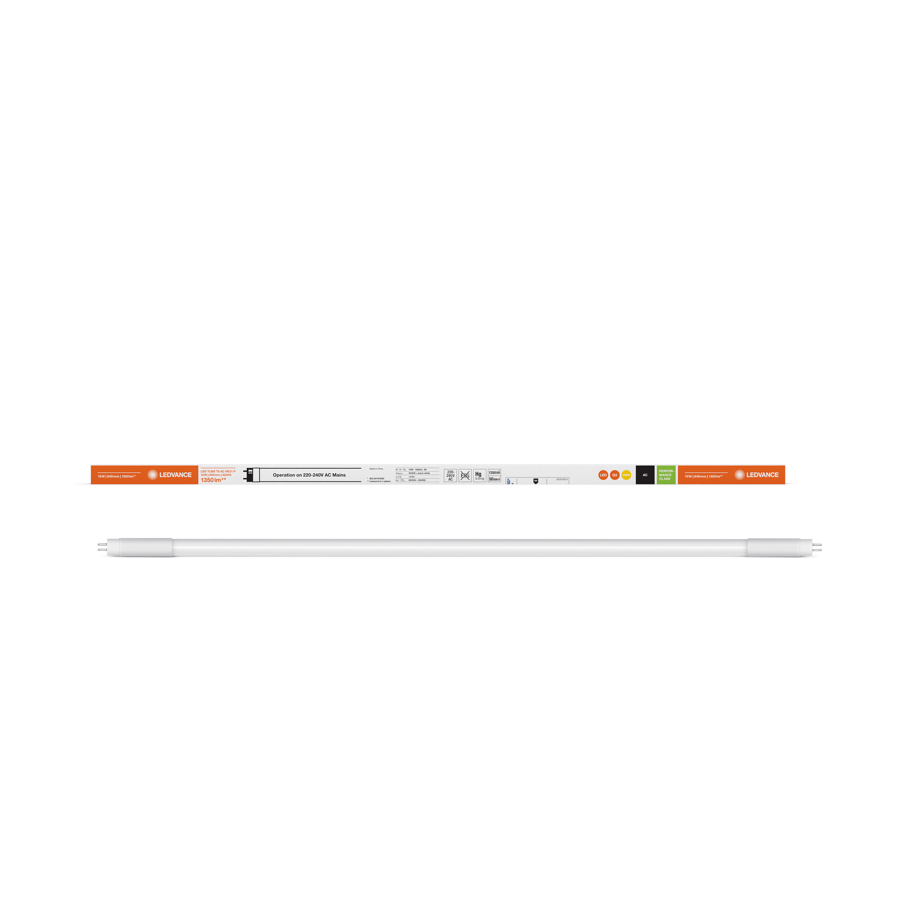 LED TUBE T5 AC HE21 PERFORMANCE 849 mm 10W 830 | G5 | 10 W | 220…240 V | 50000 h | 1350 lm | 21 W | 190 ° | No |