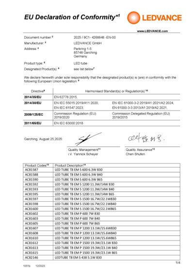 LED TUBE T8 EM PERFORMANCE 1500 mm 19.3W/23.1W 830 | G13 | 23.10 W / 19.3 W | 220…240 V | 75000 h | 58 W | 190 ° | No | |