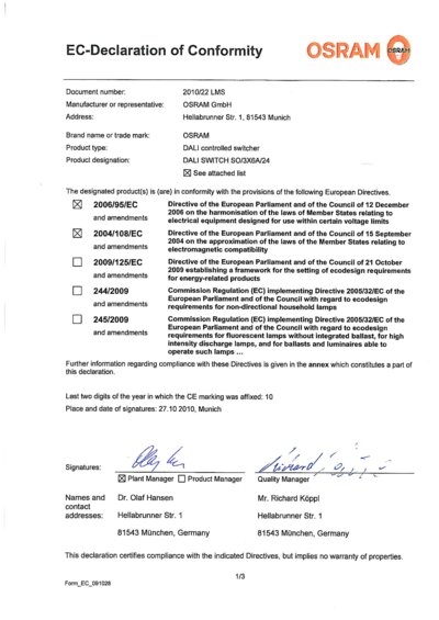 EAN | SEG number | STK number | EFO number | ELDAS number |