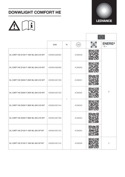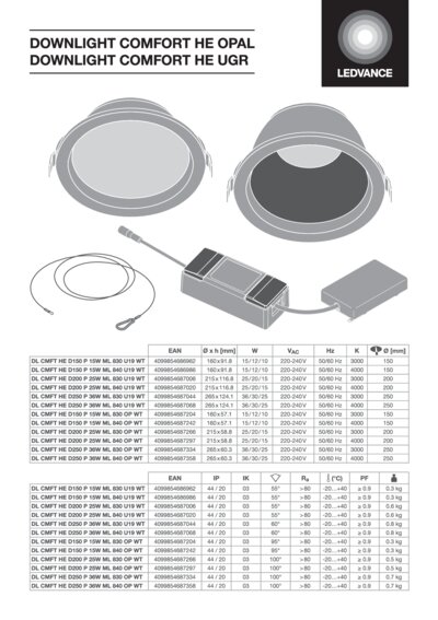 DL CMFT HE D250 P 36W ML 840 OP WT | 36 W / 30 W / 25 W | 100000 | 100 ° | 5580 lm / 4650 lm / 4000 lm | No |