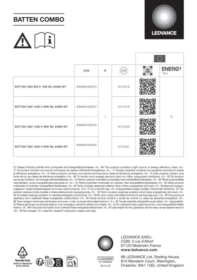 | BAT CBO 1800 V 65W MS 840 IP20 WT | 65 W / 33 W | 25000 | 110 ° | 9750 lm / 5050 lm | No |