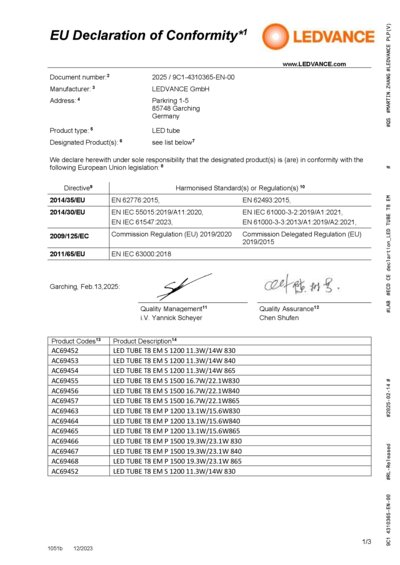 LED TUBE T8 EM SUPERIOR 1500 mm 16.7W/22.1W 865 | G13 | 22.10 W / 16.7 W | 220…240 V | 100000 h | 58 W | 190 ° | No | |