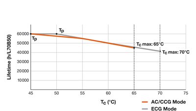 2) In operation with CCG/AC. Tp: 50°C in ECG operation. / Tp rated. Tp point coincides with Tc point - marked on device