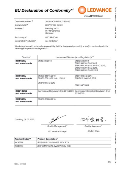 Product remark | All technical parameters apply to the entire lamp, Due to the complex production process for light-emitting diodes, the typical values shown for the technical LED parameters are purely statistical values that do not necessarily match the actual technical parameters of each individual product, which can vary from the typical value |