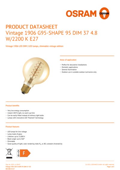 | Product remark | All technical parameters apply to the entire lamp, Due to the complex production process for light-emitting diodes, the typical values shown for the technical LED parameters are purely statistical values that do not necessarily match the actual technical parameters of each individual product, which can vary from the typical value |