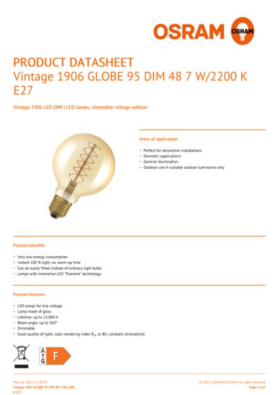 | Product remark | All technical parameters apply to the entire lamp, Due to the complex production process for light-emitting diodes, the typical values shown for the technical LED parameters are purely statistical values that do not necessarily match the actual technical parameters of each individual product, which can vary from the typical value |