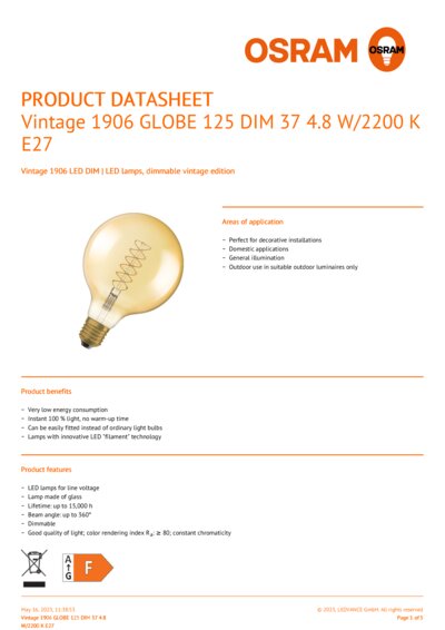 | Product remark | All technical parameters apply to the entire lamp, Due to the complex production process for light-emitting diodes, the typical values shown for the technical LED parameters are purely statistical values that do not necessarily match the actual technical parameters of each individual product, which can vary from the typical value |