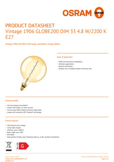 | Product remark | All technical parameters apply to the entire lamp, Due to the complex production process for light-emitting diodes, the typical values shown for the technical LED parameters are purely statistical values that do not necessarily match the actual technical parameters of each individual product, which can vary from the typical value |
