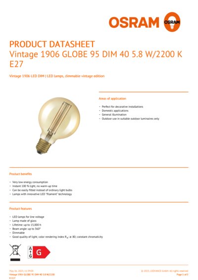 | Order reference | 1906LGL95D 5,8W |