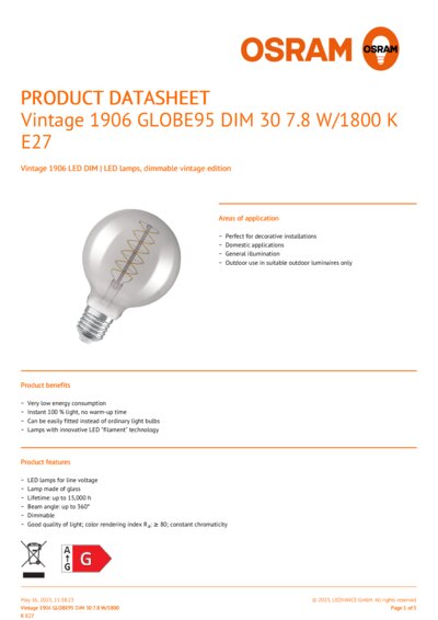 | Product remark | All technical parameters apply to the entire lamp, Due to the complex production process for light-emitting diodes, the typical values shown for the technical LED parameters are purely statistical values that do not necessarily match the actual technical parameters of each individual product, which can vary from the typical value |