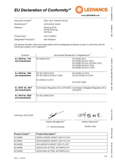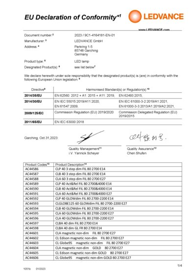 | Product remark | All technical parameters apply to the entire lamp, Due to the complex production process for light-emitting diodes, the typical values shown for the technical LED parameters are purely statistical values that do not necessarily match the actual technical parameters of each individual product, which can vary from the typical value |