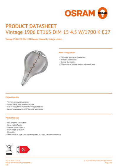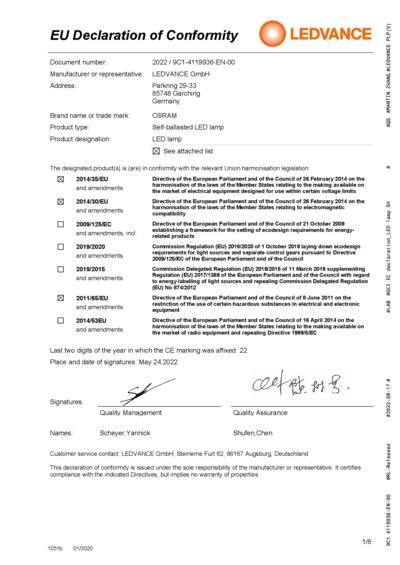 Product remark | All technical parameters apply to the entire lamp, Due to the complex production process for light-emitting diodes, the typical values shown for the technical LED parameters are purely statistical values that do not necessarily match the actual technical parameters of each individual product, which can vary from the typical value |