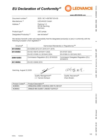 Product remark | All technical parameters apply to the entire lamp, Due to the complex production process for light-emitting diodes, the typical values shown for the technical LED parameters are purely statistical values that do not necessarily match the actual technical parameters of each individual product, which can vary from the typical value |